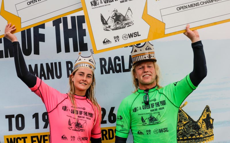 The Backdoor King and Queen of the Point drew a strong local turnout, both in the water and on the Manu Bay hillside, with added interest this year as the event offered wildcard spots into the Championship Tour.