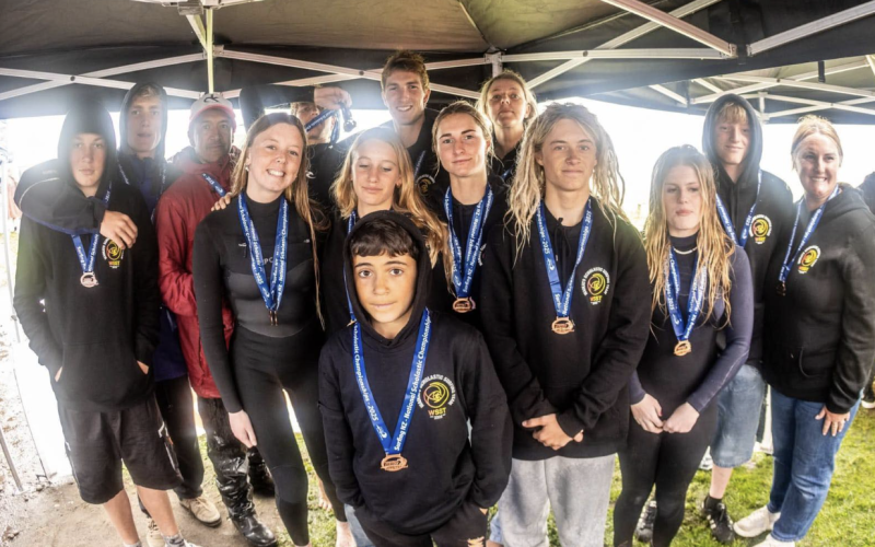 After battling rugged weather and shifting swells,the Waikato scholastics surf team came home third at the National surfing competition which was held last week in Taranaki. The event was won by Bay of Plenty with Auckland taking second place.
